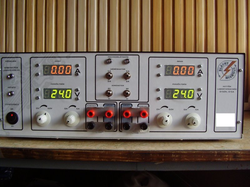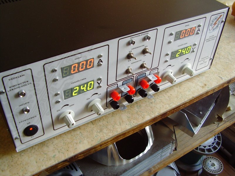 Szeretném bemutatni művünket,melyet osztálytársammal ketten készítettünk az Országos Elektronikai Konsturktőr versenyre. Ez egy labortápegység, mely Alkotó tervei alapján készült, a kapcsolás itt az oldalon a "Labortápegység készítése" topicban megtalálható. Az elkészítés során igénybevett elméleti segítségnyújtást köszönöm Köbzoli és Alkotó kollégának, valamint Alkotónak köszönet a kapcsolás és nyáktervek közzétételéért. A versenyen 5. helyezést értünk el ezzel a készülékkel. Íme pár kép: