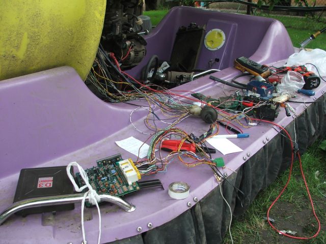 Mi egy barátommal vettünk egyet,amit az előző gazdája kissé összemókolt,csak addig menjen ,míg elviszik alapon. Egy porlasztót szerelt rá egy 1.0L-es suzuki motorra. És itt jön be a képbe az elektronika:Mi hárman visszaépítettük rá az injektort,a hozzátartozó vezérlőelektronikával együtt.Még nem tökéletes,de már megy a motor. Ui: Ha úgy gondolják a modik,hogy off,akkor mehet a süllyesztőbe. Sziasztok. Barna István
