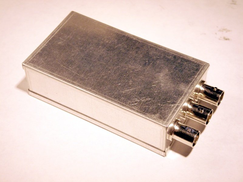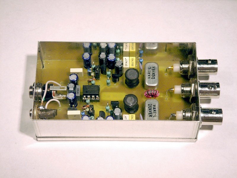 Hétvégén lettem kész egy Mini R2-es vevő konverterével. Ez egy nagyobb munka része, egy RH megfigyelővevő lesz belőle egyszer. A nyák vasalásos, a doboz szabványos ónozott vas, a bemeneti splitter toroid trafó saját tekercselés. A két diódás mixert még a börzén vettem egy idősebb úrtól potom pénzért. A kütyü sima szignálgenerátorral meg egy 10m-es vezetékkel, mint antennával lett kipróbálva, tegnap egy bolgár amatőrt is hallottam vele. A vevő többi része - IQ-VFO, analóg jelprocesszor, bemeneti sávszűrő, előerőlködő - majd ezután lesz terítéken. A konverter rész azért lett külön megépítve, mert majd szeretnék vele kísérletezgetni úgy, hogy PC-re rákötöm, hogy az végezze a jelfeldolgozás további részét. (Ehhez kellenek a jumperek is.) Minden építő kritikát szívesen fogadok!