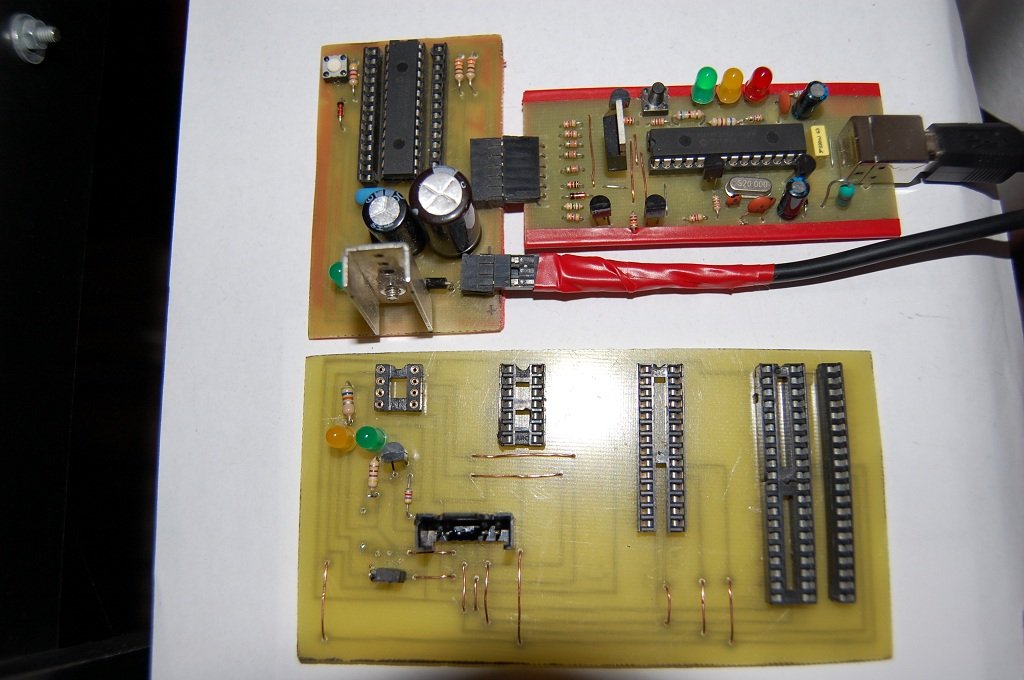 Én meg a PIC-es cumót osztanám meg veletek, csak elkészült végre. Az USB-s az a PICKIT2 ami rá van kötve egy tesztpanelre amit kilehet "csatolni" próbapanelra. Előttük meg egy író/olvasó "modul" 4 különféle foglalattal, amire applikáltam egy 3,3V váltó kapcsolót a jumperral. Mert ugye az után épített pickit2-es csak evvel marad el a gyári cucctól. Mivel a leddel van beállítva 3,3V azt még nem tudom hogy ha belekerül egy 3,3v-os cucc akkor azt mennyire húzza meg. De az 5V tutira megyen