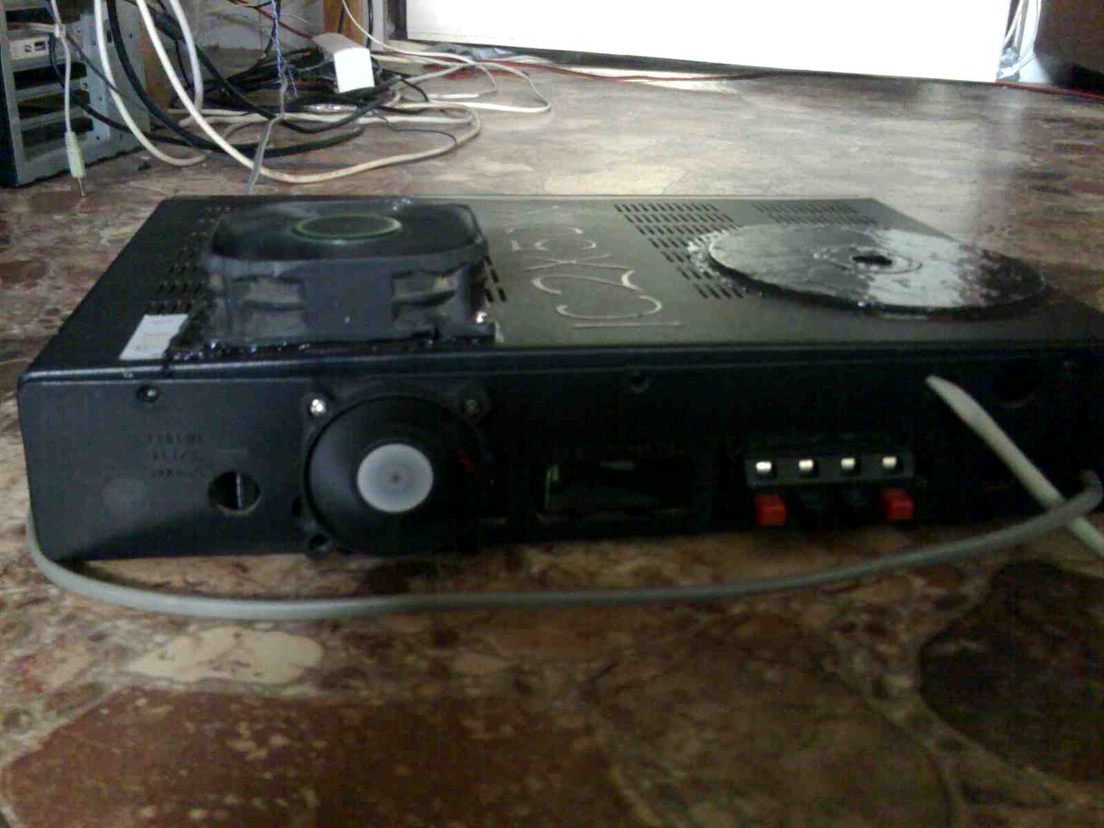 Amint bátyám hazaér már csinálok is képet a belsejéről! Mert az ő telefonjával tudok képet csinálni. A tetején a cd azért van mert síma trafó van benne amit én tekercseltem át és a trafó magasabb volt mint a doboz magassága!