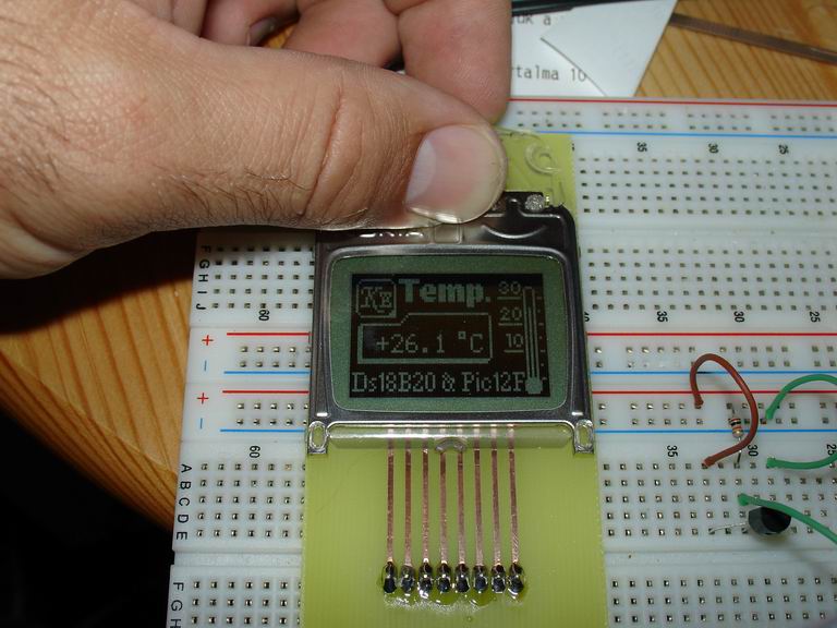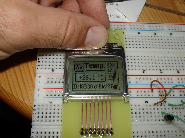 Egyenlőre csak próbapanelon, de megépítettem az itt található kapcsolást egy Nokia 3310-s LCD-ből.