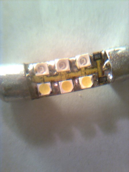 Egyik barátomnak alkottam egy kis semmiséget Karácsonyra.(és ez mellé még kap 20 db fehér SMD ledet, és ellenállatot, hogy az angel eye, sárga izzók helyett szép fehéren világítson) Ez amolyan SMD ledes szofita "izzó". A két vég egy eredeti izzóról való, a nyákot meg egész egyszerűen sikerült elkészítenem. (tapétavágóval , vagy sniccer,szike, kinek hogy tetszik)Az eggyik irányba a kék ledsor világít, ha megfordítom a világítótestet , akkor pedig a fehér.14V-nál 16mA-t kap, 10V minimum feszültségnél pedig 5mA-t, de ekkor is világít egész normálisan. Gondolkoztam 78L10-en,hogy 10V-nál is 20-at kapjon a ledsor, és a 14V-ot leszabályozza 10-re,és 20mA-t kapjon a cucc, de a polaritás csere miatt(hogy amelyik szín tetszik a LED-ek gazdájának) tönkrement volna a tápIC. Nem nagy szám, de biztos örülni fog neki a gazdája. Pár kép.(csatolva) Üdv.Tomi