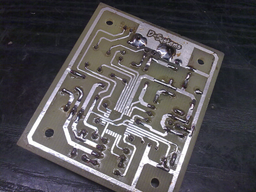 A kimart panelt egy ecsettel bekenem fluxxal és pákával végigfuttatom a vezetősávokat sima 0.8-as ónhuzalt használva. Macerás minden vezetősávot egyesével végigfuttatni, de a kémiai ónozóval hiába próbálkoztam, nem sok köze volt annak az ónozáshoz...