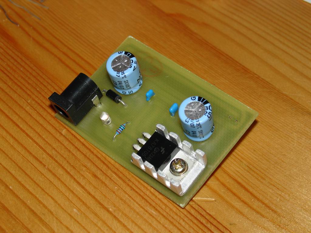 Készítettem egy 5V-os tápegységet a próbapanelomhoz, miután a "bedugdosós" módszert alkalmazva el nem szállt egy PIC-em. Siettem, nem figyeltem a stabIC bekötésére és telibekapott a PIC kb.14V-ot, ami nem tetszett neki. Nem nagy dolog, de hasznos...