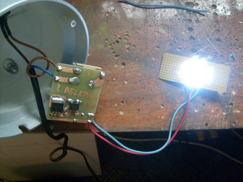 Sziasztok.Egy ledes lámpát csináltam mert meguntam cserélni a hőelemet a trafójába ugyanis kétszer tettek bele 50W-os tűlábas halogént a 20W-os trafó nem díjazta.