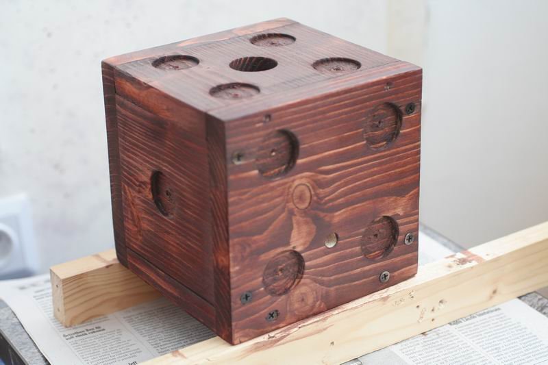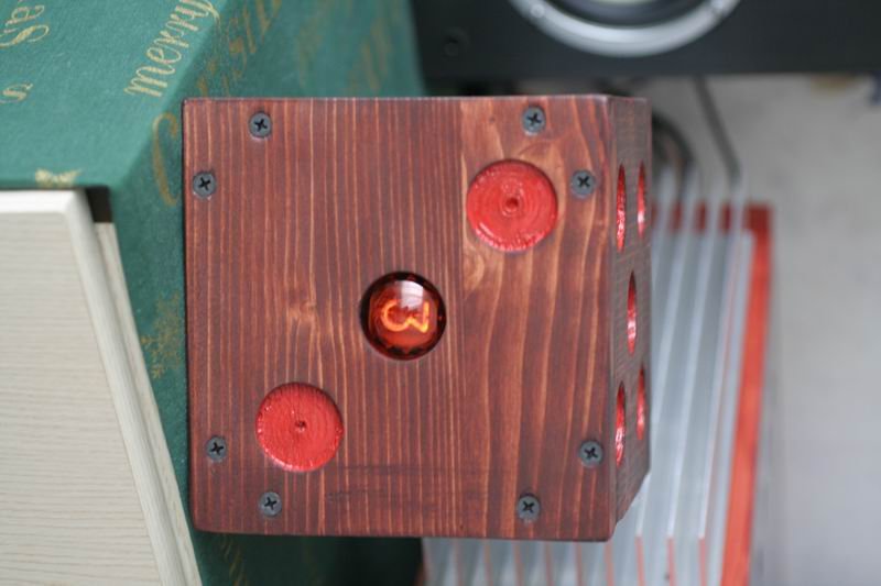 A napokban készült el Atosz mester kapcs. rajza és cikke alapján az 1 csöves nixie órám. Egy dobókocka ihlette meg a burkolatot. A kivitel kicsit hanyagnak tűnhet de egy hokedlin készült az egész megmunkálás. A dekopírral nem lehet normálisan egyenesen vágni és a maradékot durva papírral kellett leigazítanom. Szóval voltak gondok de összeállt. Azt hiszem egyedi lett, még nem láttam ilyet előtte.