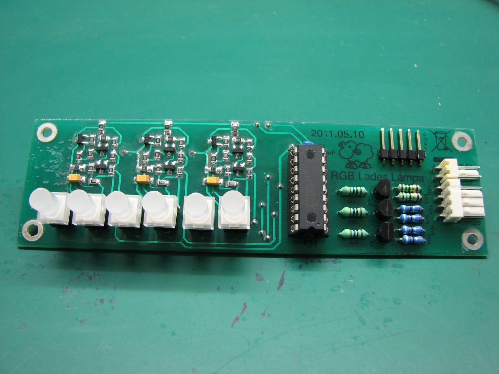 Régóta nyomon követem e témát, melyben sok szép megépített áramkört lehet találni. Végre én is készítettem olyat amit bátran mutatok meg nektek. Párom szülinapjára készült egy RGB sólámpa, az eredeti áramkör egy Ikea Lamp Mod-ból való, 16F628A helyett sima 628-at használtam mert az volt itthon, az üzemmódváltó dipkapcsolók helyett itt a hobbielektronikán található kapcsolást Kapcsolást építettem meg smd-ben 6 példányban. A nyák fotózással készült dry fóliával, a lötstop réteg sajnos nem lett 100%-os ez volt az első ilyen próbálkozásom, de használható, valószínű túl melegíti a nyákot a laminálóm, az alkatrészek feliratai vasalással készültek. eredetileg egy üveg vázába épült volna az áramkör de sajnos 3 váza eltörése után a sólámpa mellett döntöttem mivel üvegesek sem vállalták a váza aljának kifúrását. A dobozolás 2 réteg 18mm-es rétegelt lemez az alja pedig 4mm-es rétegelt lemez, a belső részt felső-maróval alakítottam ki. A gombok körüli lemez egy epoxis nyák amiből ki lett marva a feliratok helye és fekete lakkfilcel festettem be, majd lecsiszoltam a felesleget és políroztam a lemezt. A tápegység egy szétbontott 5V-os kapcsolóüzemű dugasztáp. A bekapcsolás utáni működésről készült egy kis videó is amit feltöltöttem a Youtube-ra. Végül pár kép: |