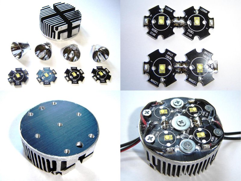 Egy elemlámpát építek éppen. Igaz, hogy még nincs kész, de azért tettem fel pár képet ![]() Jelenleg már a bordán vannak a LED-ek, így tudom tesztelgetni őket. A hűtőborda egy szögletes procihűtő, öröm volt kör alakúra reszelni. A 4db LED, összesen 1240 lumen és 12,4W. Az asztalomon lévő 75W hagyományos égőnél észrevehetően erősebb a fénye. Bizony megfelel egy 100-as égőnek. Ettől persze még nem lenne jó elemlámpa, mert a fényét irányítani kell, ezért 7 fokos tükröket szereltem rá. A fény egy része "elszökik", tehát a fókuszálás pontján kívül is látni, de azért igen csak sok fény megy oda, ahova kell ![]() Hát belenézni nem tanácsos 10m-ről sem, brutális fénysűrűsége van. Mintha napba néznék. . Este belenézni meg kész öngyilkosság.Ha elkészül teljesen, még dobok képeket. Természetesen aksikról fog menni, és hordozható lesz. zoka