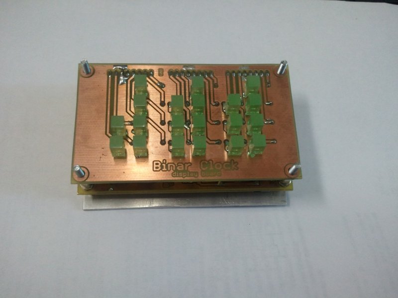Én is bináris órát építettem, csak a rögösebb utat választottam. Régóta szerettem volna full TTL bináris órát építeni, már két éve meg is terveztem mindent, de csak most volt lelki erőm nekiállni. Sikerült is egy hibát véteni: valamiért a terven OR (LS02) kapukat használtam, gyakorlatban pedig NOR (LS32) kapuval próbáltam ki, persze a kettő lábkiosztása véletlenül sem egyezik meg... így egy kicsit boncolni kellett, de szerencsére sikerült kulturáltan a módosítás. Majd a képen látható fa dobozkába kerül, lakkozva lesz és sötétített üveg lesz óra az előlapja.