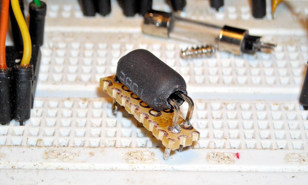 Már mióta szenvedek, mert nem kapok miniatűr higanykapcsolót. Végre találtam egy kis vasgolyót itthon és megalkottam a prototípust. Így már talán utánépíthetővé válik. (Azért ilyen csúnyácska, mert prototípus!)