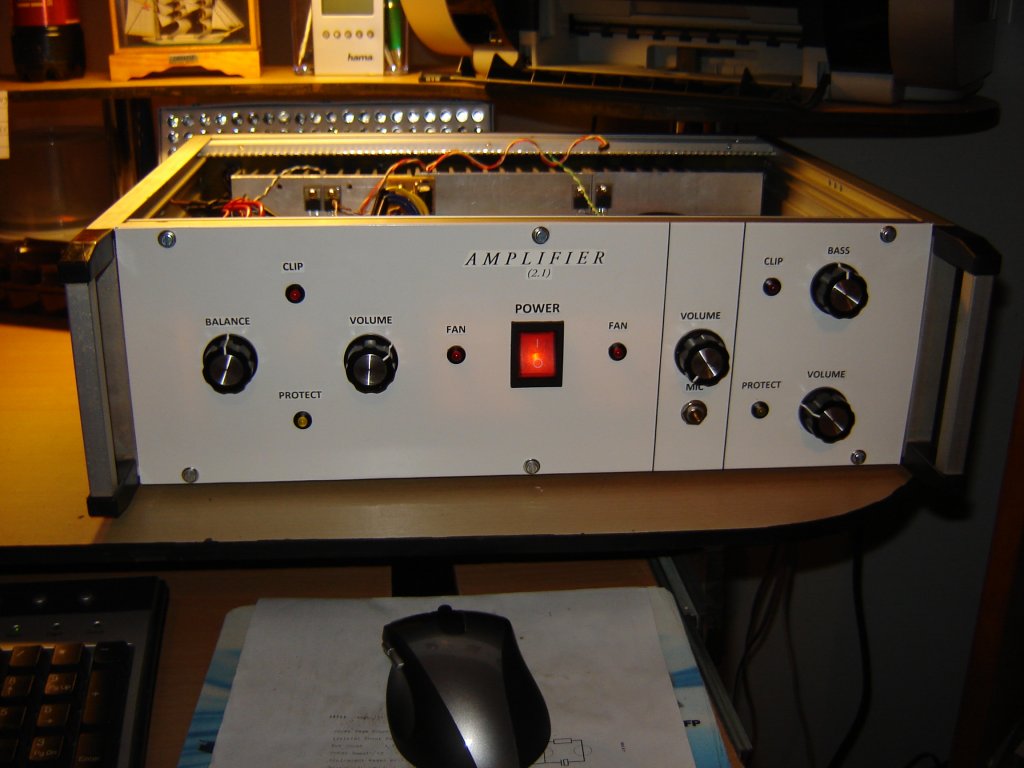 Sikeresen elkészültem az erősitőmmel, ami egy 2.1-es ST151-es erősitőből összedobott rendszer. Nagyon jól megyen a kicsike. A doboz még nincsen befejezve mert még az oldaláról hiányoznak az boritólemezek, és még a teteje is hiányzik. Az előlap se a legszebb mert csak tapétázva van és úgy van rajta felirat, de nem is nagyon a kinézet a fontos hanem hogy mit tud, mit rejt a belseje. Nade ne én beszéljek hanem a képek. A hatalmas képek átméretezve .