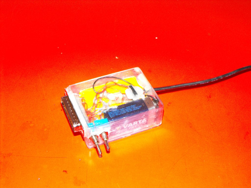 Megépítettem a watt által prezentált LPT-s égetőt, egy itthon talált műanyag (rajzszeges) dobozba zsúfoltam bele, mivel nem volt más, USB-ről kapja az 5V-ot, egy 9Vos és 2 1,5Vos elemről pedig a 12V-ot.