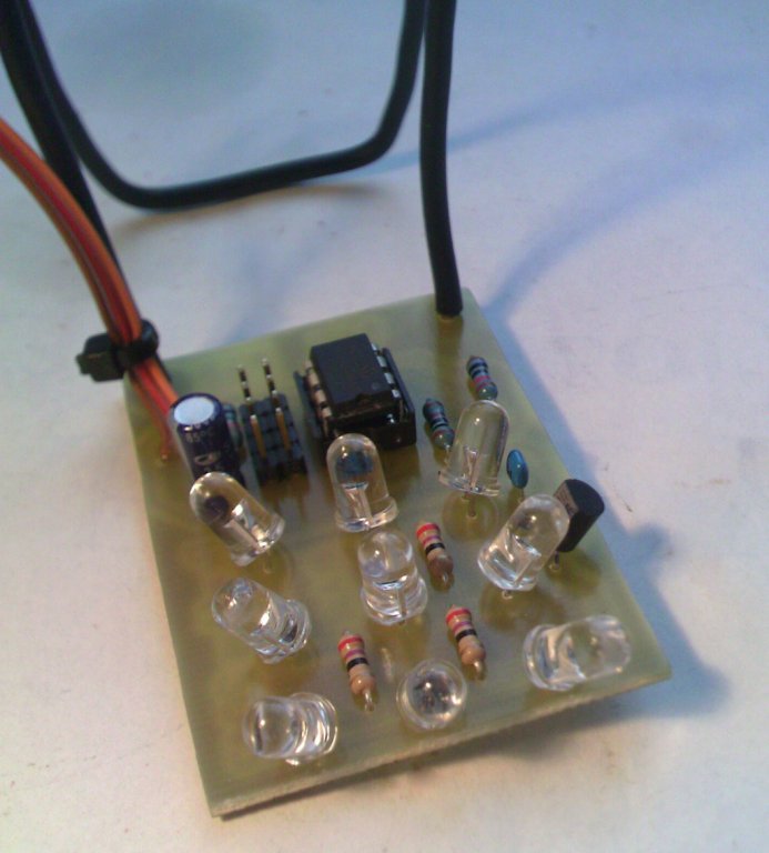 Sajnos nem tudtam valami komoly képet csinálni,mert nincs itthon a fényképezőm. A led sor : egy 10mm széles hosszú műanyag lapra 2 oldalú ragasztót raktam,majd ráragasztottam a ledeket és párhuzamosan össze kötöttem őket. Az SMD ledek egy pici panelen vannak amin rajta vannnak az SMD előtét ellenállások is. Ez a sor a konyhaszekrény pult aljába van beleragasztva.