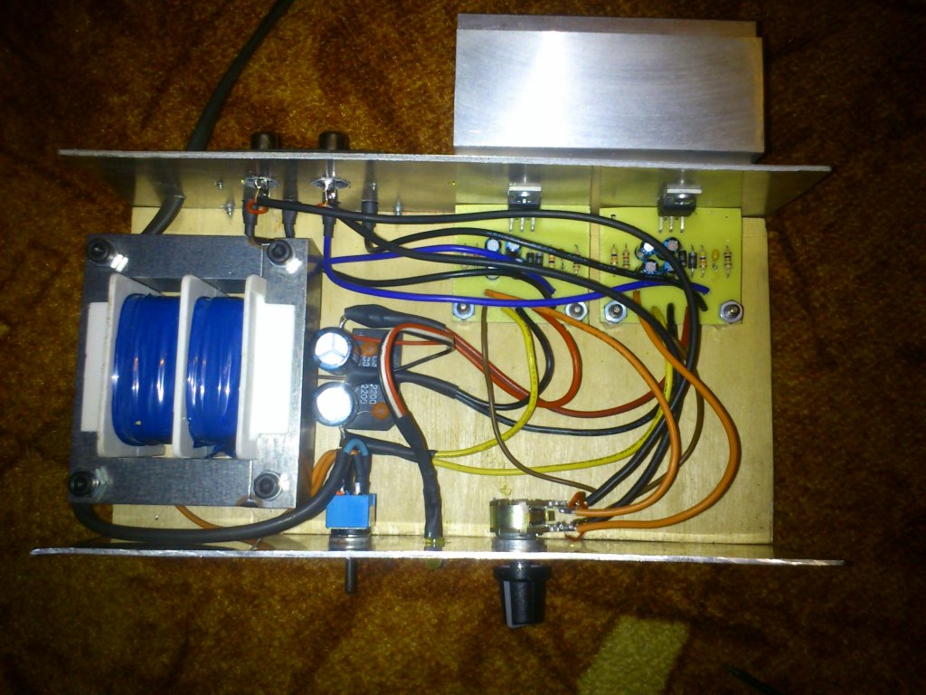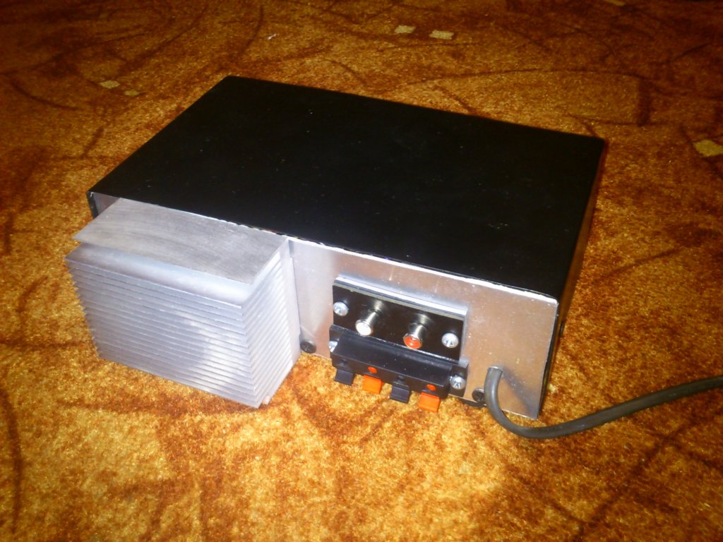 Remekül néz ki! Engem is meg ihlettél valami hasonló erősítő építésére. A fejemben már készül a terv. A kondi milyen típusú ? Valamint jól látom, hogy az erősítő nem kap a tápból földet, csak a jelből ? Minden jót. B