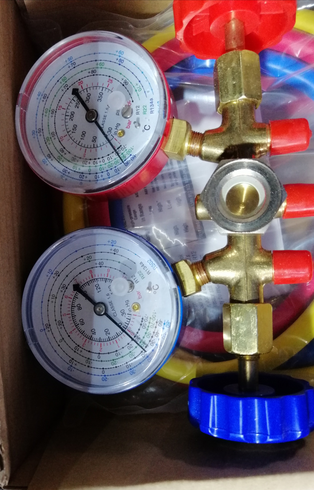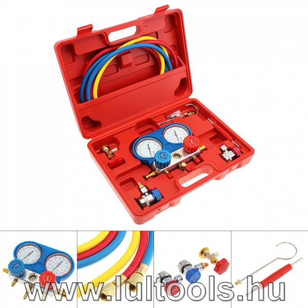 A képen látható Hűtő-Klíma nyomásmérő készlet,szervizcsap használható valamire. ? Attól függetlenül hogy van kocsi klimához használható csatlakozó szett is hozzá, split klimához is ugyanúgy jó ? -Vagy érdemesebb inkább a másikba (piros dobozban) beruházni ? kb (23 ezer ft) 2 utas csaptelep folyadéknézővel kék mérőóra az alacsony nyomású oldalhoz: 0-35 bar (0-500 psi) piros mérőóra a magas nyomású oldalhoz: 0-55 bar (0-800 psi) 3 db tömlő: piros, kék, sárga tömlők hossza: 150 cm szelepek és csatlakozók ütésálló lencse, színes védőgumi borítással A hozzászólás módosítva: Jún 26, 2020