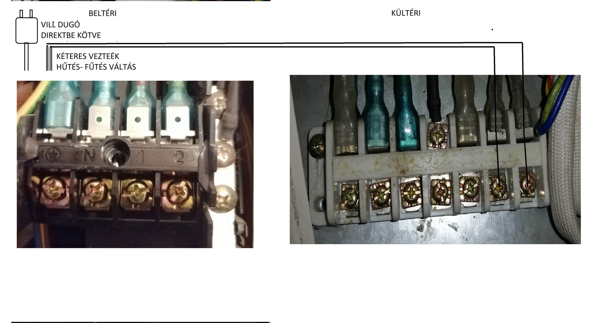 Elvileg a beltériben is volt bekötési rajz , így csak a képről nem lehet biztosan megmondani mit hová