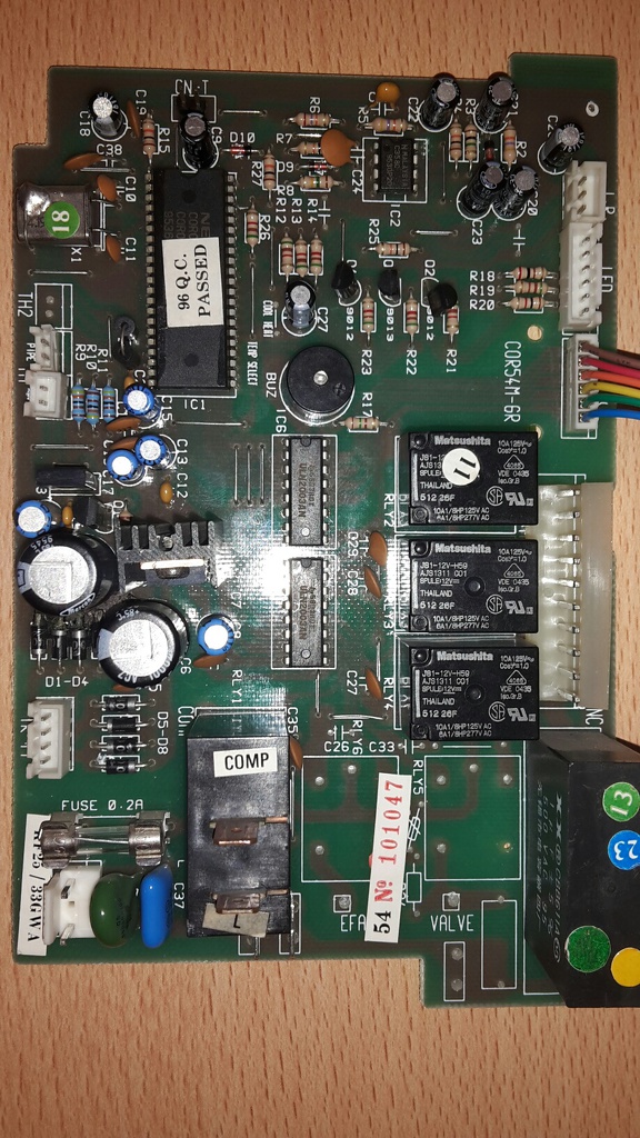 Sziasztok! Van egy Gree kf 33 típusú klímám (nem mai darab). Az elmúlt napokban azt vettem észre, hogy csak a sokadik távirányító nyomásra indul be, tegnap már egyáltalán nem indult be. Szétszedtem, és a trafójának 2 kivezetése van a panelra, egy 13.5v, és egy 9.5v a 13.5v-on van egy 12v-os stabilizátor, a 9.5v csak simán egy diódahídon keresztül megy, de a diódahíd után van egy kerámia kondenzátor, ami a negatívot és a pozitívot köti össze, és teljesen el van égve, az értéket sem tudom leolvasni, amíg bent volt ez a kondi a pizitív és negatív ágak között kontakt volt, ami gondolom nem jó, most hogy kivettem, már nincs. Kérdésem, lehet-e köze a hibához, és mire szolgál az a kondi, mekkora lehetett? Mellékelek egy képet a panelról.