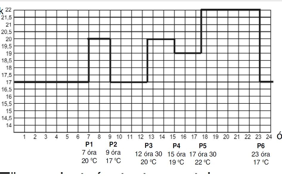 Ne szedd szét a kazánt! Semmi köze a termosztátnak a vízkőtelenítéshez. Nem azért nem akar fentebb menni a hőmérséklet, mert vízköves volna a kazánod. Ha a kazán előremenő hőfoka 65-75fokos, akkor a termosztát akkor fog majd kikapcsolni ha ezzel a fűtőközeggel felfűtöd a helységedet. Ezt pedig a termosztát programja határozza meg, amit megadsz neki intervallumot egy adott hőfokkal. Ha nem változtattál a gyári beállításon, akkor most a diagramm szerinti a hőfoklépcső.