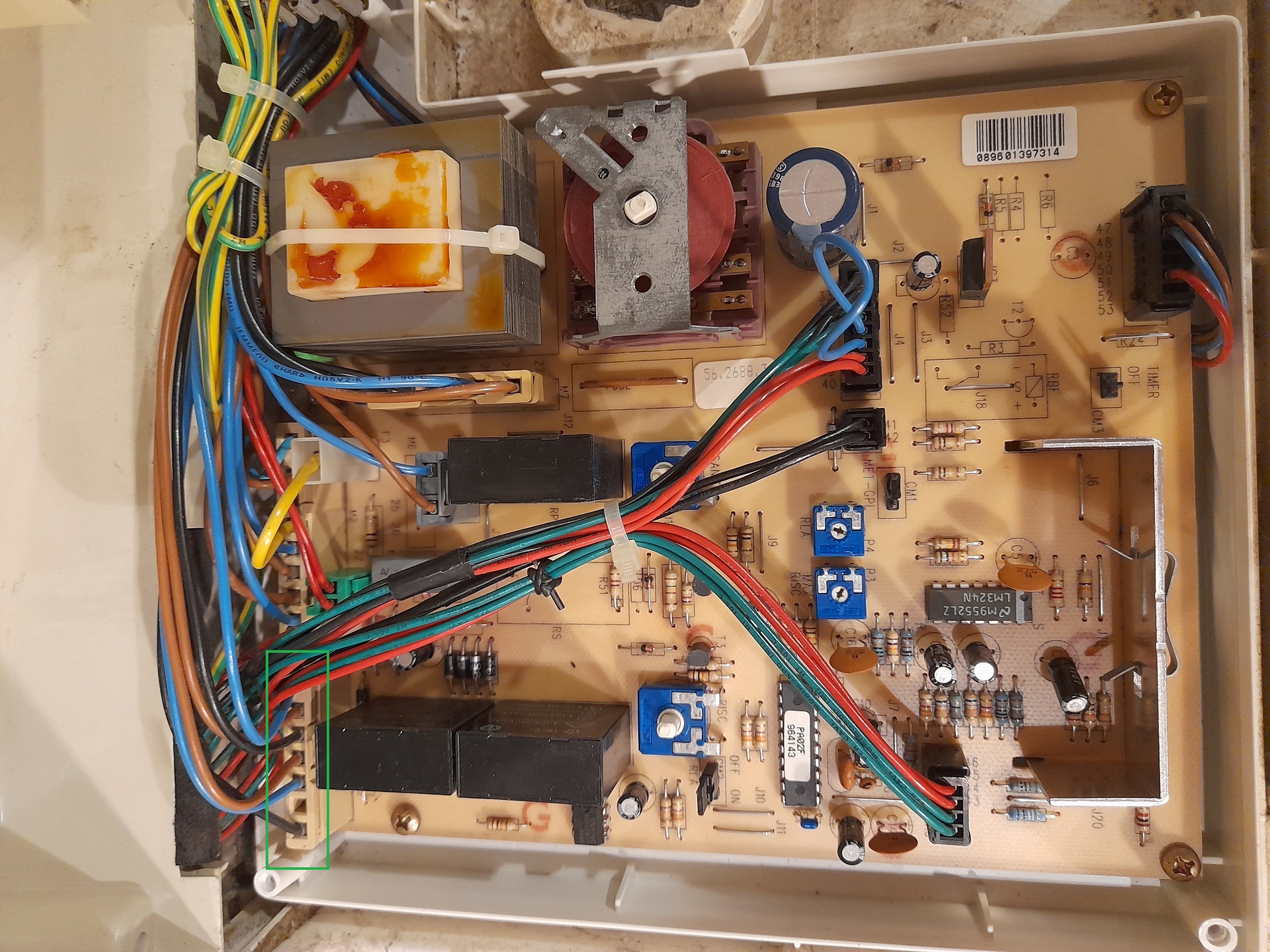 A vezeték bekötések jók, víz/ázás nincs, a vezérlő panelon sem látszik szemre semmilyen nyom.