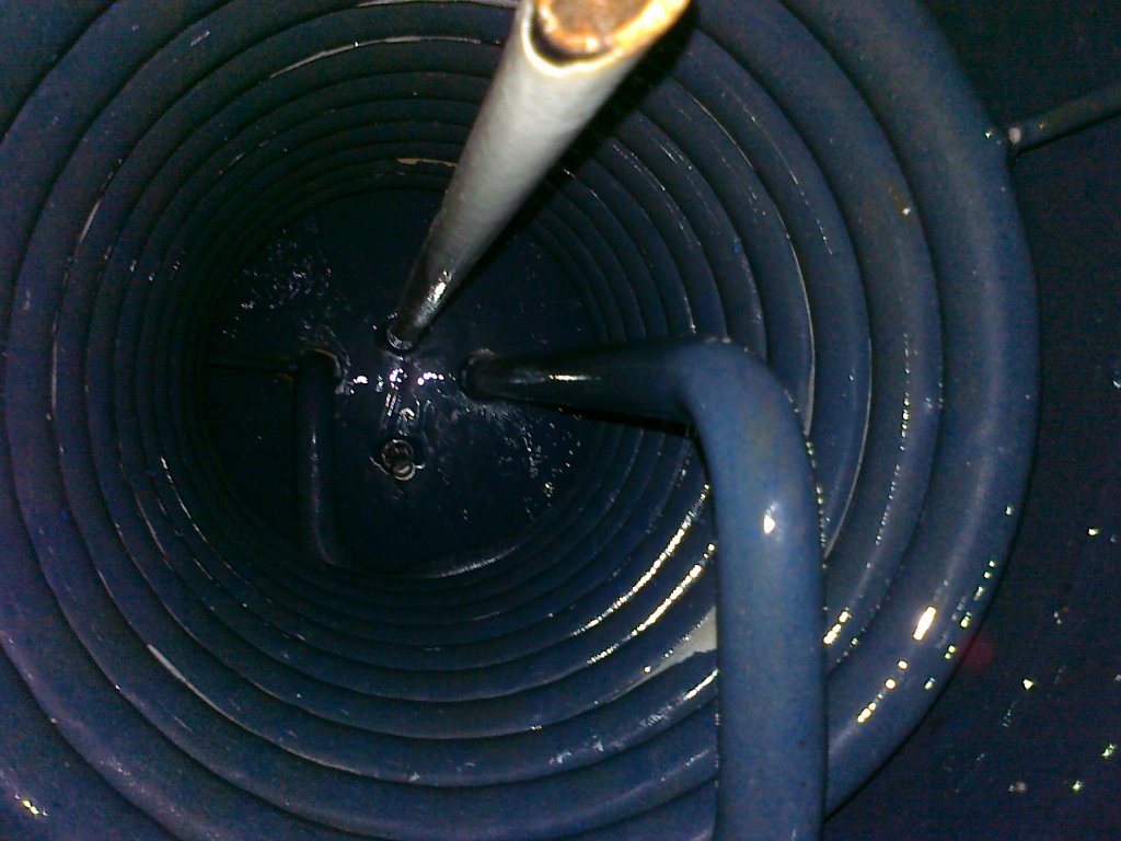 Igen, a tároló fala és a csőkígyő között egybefüggő vizkőlerakódás lett 27 hónap alatt
