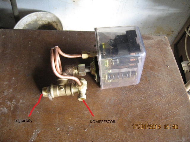 Ha vásárolsz ehez egy nyomás kapcsolót amelyik a beállított nyomásnál lekapcsolja a motort akkor azon van egy kicsi szelep amelyik leereszti a levegőt a komreszor és a viszacsapó szelep közöti csőből. Tehát ezen a viszacsapó szelepen levő csatlakozót össze kell kötni a nyomáskapcsolón levővel. Ennek az a szerepe hogy a kompreszor szelepei nincsenek nyomás alatt igy a motor könyeben indul. Holnap csinálok róla képet és fölteszem. Én is épp most kezdtem fölújítani a kompreszoromat.
