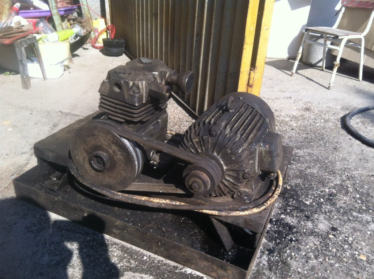 2 hengereset szerettem volna, be is szereztem egy iveco 400ccm-es olajos vízhűtéses kompresszort, de amikor szétkaptam egy olyan csúnyaság jött elő, hogy nincs benne csapágyazás. Mivel fogaskerekes megoldással volt hajtva közvetlen a motorba szerelve. ezért túl is adtam rajta. De szereztem 2 db IFA kompresszort. Úgy döntöttem, hogy összeépítem a kettőt egynek, persze csak ékszíj hajtással.