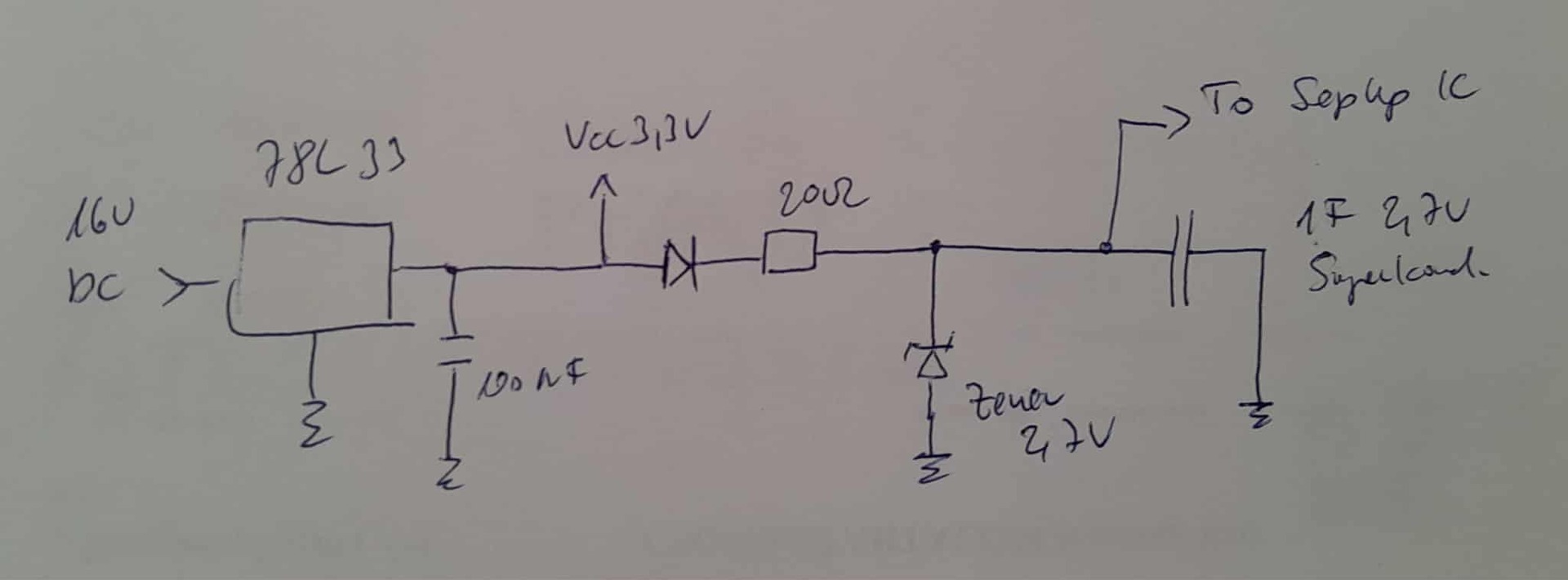 Többször is mértem rajta feszültséget. 1-5-10 perc 1 óra, 10 óra. Mindig 5,5V alatt volt a feszültség akkor is, ha nem volt ott a szuperkondi. Az volt a célom, hogy lehetőleg maximálisan kihasználni a kondiban levő feszültséget. Ha ez így nem megy, akkor egy step up kört még beteszek utána.