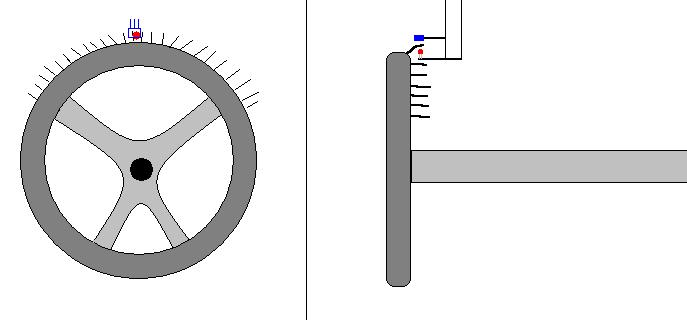 Ilyenen már Én is gondolkoztam. Van egy valódi bőr sportkormány , és úgy gondoltam megoldani mint az egeret. Nyisd meg a képet, úgy magyarázom. Tehát egy infra led lenne a "rudacskák" mögött, a rudacskák előtt pedig egy fototranyó vagy más hasonló eszköz. Persze a rudak úgy lennének állítva, hogy ne zavarjanak a kormányzásban... Tudjátok, mint a régi "golyós" egérben is a golyó mellett levő kettő ilyen infra kapu... A rajz nem a legjobb, de tudjátok painttel készült (youtube-os video!!)... Persze kéne rá még egy force feedback is...