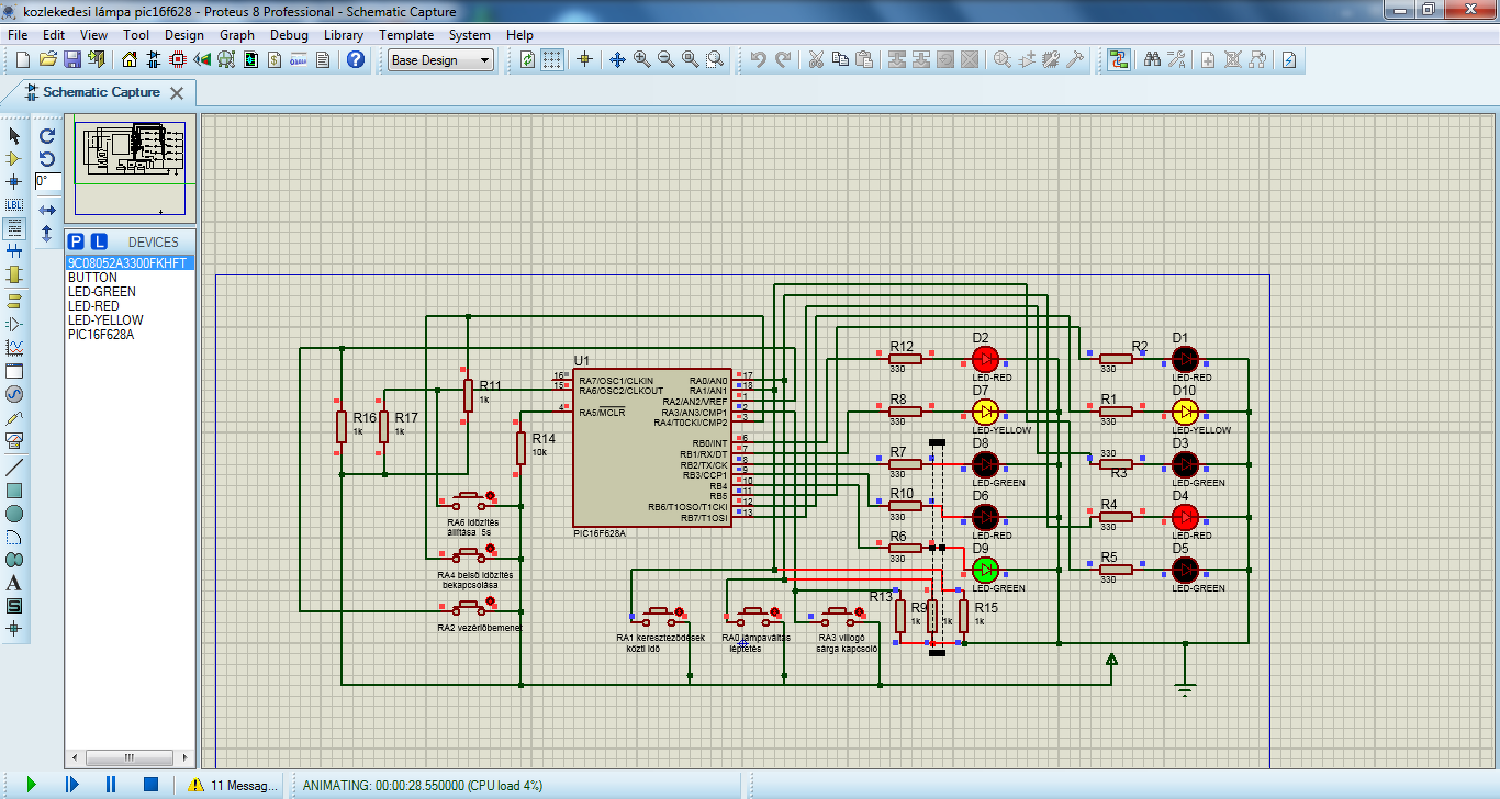 Az első idézetben leírtam a lámpameghajtó pic bekötését , a másodikban az OPCIONÁLIS lámpameghajtóét (ami külön áramkör ) nem is értem miért kevered a kettőt ? Ha az RA4 lábat felkapcsold akkor beindul a belső időzítés és egymagában működik 1 kereszteződés , ha lekapcsolod és rákötöd az RA2 lábat a másik vezérlő kimenetére akkor az lépteti az összes kereszteződés váltását (a beállított idővel eltolva egymástól)
