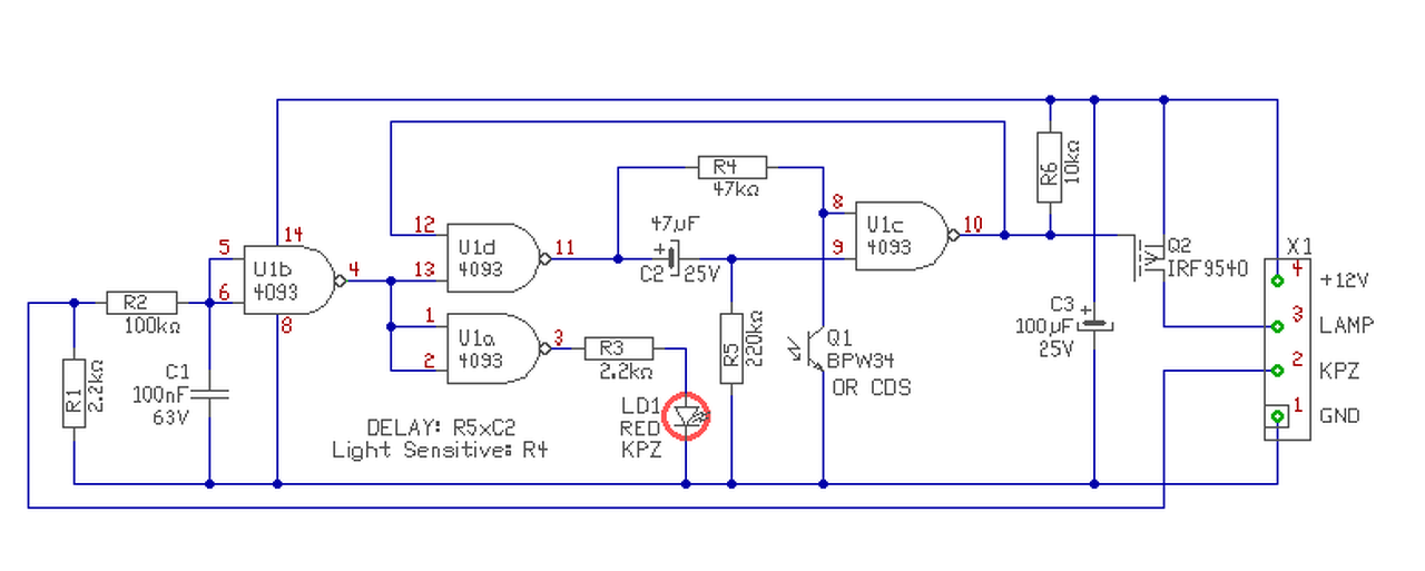 De egy ilyen feladatnál (bár elsőre nem látszik) más kritériumok is vannak. Pld. hogy szinte ne legyen önfogyasztása. Hiszen az áramkörnek állandó feszültség alatt kell lennie. Gondolom azért írod hogy így is jó, mert nem egy nagy kaland, ha nappal is világít a lámpa arra a 10 másodpercre. De megrajzoltam hogyan oldható meg, persze kicsit más eszközökkel, de szerintem ez sem sokkal komplikáltabb.. Az áramkör egy monostabil multi, amit az első bejövő villanás indít. De az időzítés csak akkor indul el, ha sötét van. Egy Led jelzést is beletettem, hogy világosban (mikor nem kapcsol fel a lámpa) látható legyen, hogy azért jön az indító jel. De hogy ne azt érezd, hogy csak cseszegetlek, megrajzoltam a nyákját is. A Fet megválasztásánál ugyan az érvényes, mint előzőekben. Ha relét szeretnél működtetni vele (mert azt nem tudom), akkor bármi jó lehet bele. A hozzászólás módosítva: Jún 15, 2014