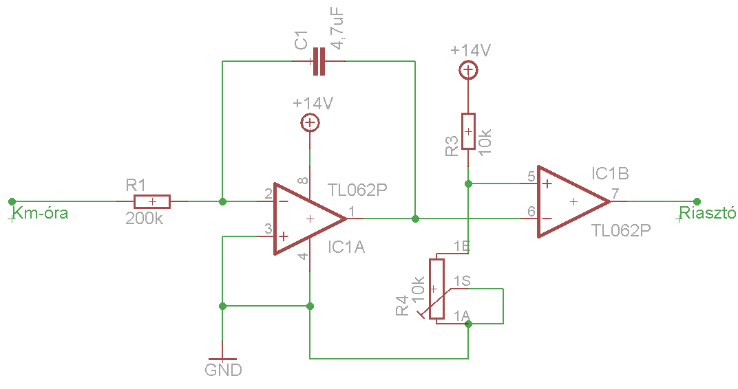 Csak kérdezniszeretnék egyet. Éspedig azt ,hogy ha a sebesség jelado jelét veszed alapul ennél a kapcsolásnál akkor szerintem nem lessz korrekt értékelés mivel a jelado tudtommal negativ félhullámu négyszögjelet ad ki és nem feszültségszint változás van hanem freki változás.. Ha rosszul gondolom akkor gondolom kijavitassz, mert az indoklásodbol nem tünik ki az adott frekvenciához adott fesz érték rendelése a müv. erősitő által.