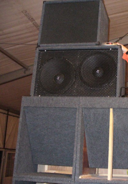 oldalanként 4 db ot tettünk fel és 2x600 w os végekkel hajtottuk őket.az idei bulin ez annyiban változott hogy csak 2 ládát vittünk oldalanként de 2x1200 w os végfokkal hajtottuk
