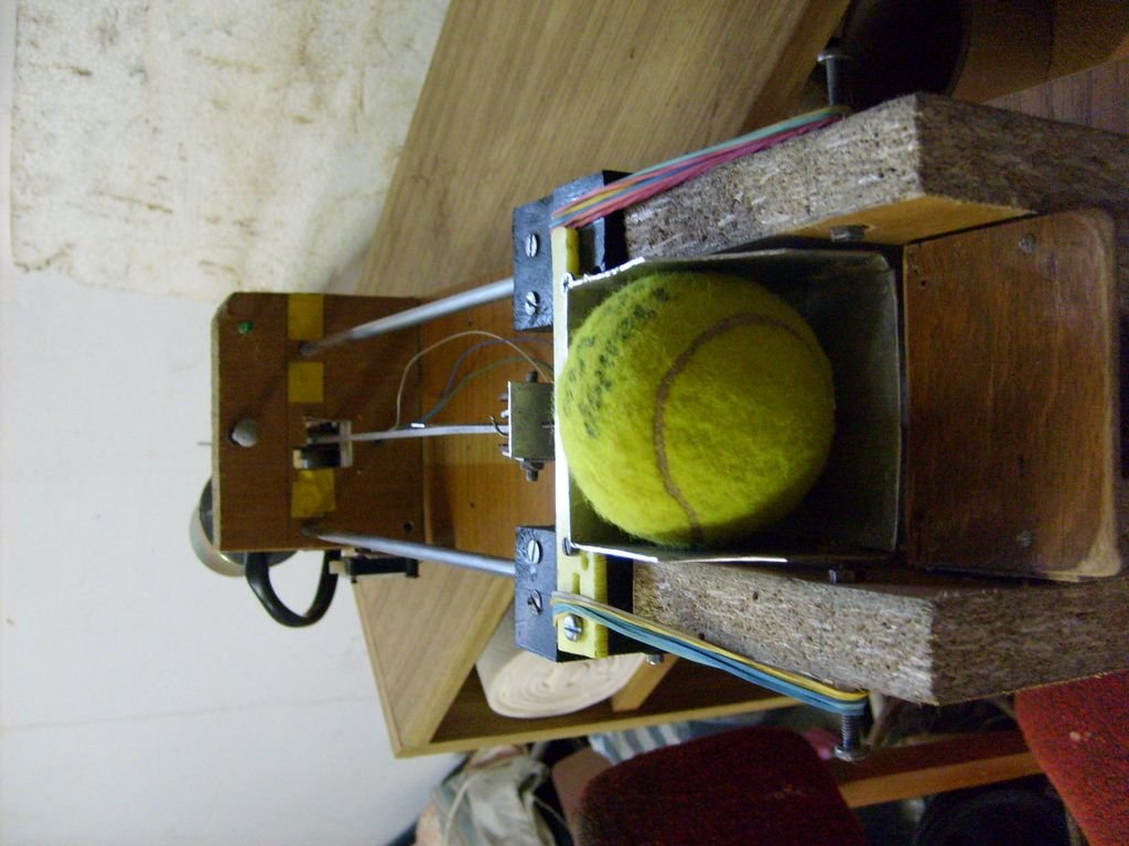 Sziasztok! Egy olyan labdakilovot epitettem amivel a kutyam akkor is tud labdazni amikor nem vagyok otthon.Egy dobozbol keszitettem boritast aminek a tetejen egy akkora tolcser formalyu lyuk van amin a labdat be lehet dobni a szerkezetbe ,egy pvc csovon legurul a kilovo helyre,ide egy suly kapcsolot szereltem amikor a labda a helyere gurul akkor indit egy ablaktorlo motort ami gyors fokozatra van allitva es kiuti a labdat a dobozbol.Ez a megoldas nem a leg tokeletesebb par vazat mar sikerult leloni,ide szeretnek valami mas megoldast talalni ami vizszintesen lovi,guritja a labdat kb 8- 10 m ert,esetleg szolenoid magnesre gondoltam vagy valamire aminek nincs tul nagy helyigenye.Ha van valami otletetek kerlek segitsetek,koszi