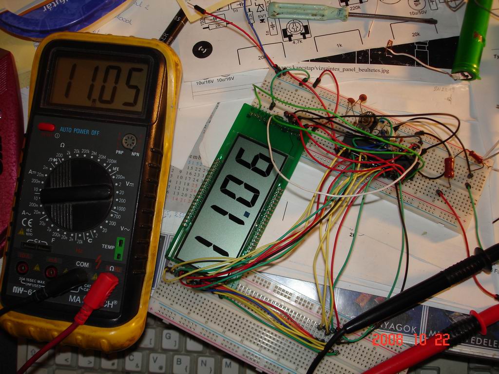 Ha már úgyis a panelmérőknél tartunk, akkor lenne pár kérdésem! Összedobtam próbapanelen egy ICL7136-os IC-s LCD-s panelműszert az IC adatlapja alapján! Működik is, csak azt nem tudom, hogy érdemes-e valami módosítani rajta, hogy jobb legyen. 200mV-os állásban az utolsó számjegy ugrál, ezzel mit lehetne tenni? Mondjuk ebben az állásban nem igazán fogom használni! A másik kérdés, a tápellátással kapcsolatos! Az adatlapon 9V a tápfesz, de én próbáltam Li-ion akkuról (4V) és arra gondoltam, hogy 2db Li-ion akku és utána egy 78L05. Szerintetek így jó lenne? Itt van róla egy kép Köszi Hali