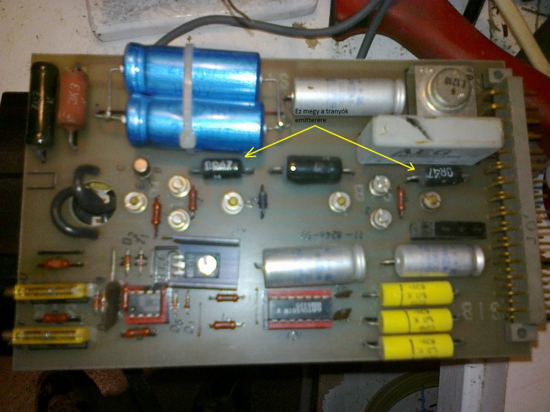 A következő cuccok vannak a panelen: 0,47 ohm/3w 2db 1 ohm/5w 1db 3,3 k/5w 1db 4,7k/5w 1db IC: MC1458 1db IC2: SG4501N 1db Grécz: B80 C5000/3300 1db BD139 1db kondenzátorok, diódák, kicsi ellenállások. 2db 5k trimmer és leg alul bal oldalt egy E1210 van rá írva olyan mintha tranyó lenne. Előre is köszönöm szépen a hozzászólásokat és a segítségeket remélem lesz belőle 2-3A.