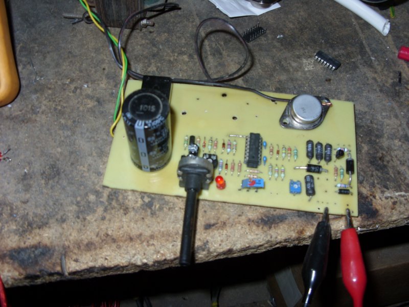 Kész lett az Alkotó féle nyákkal a Pioneer féle LM324 es labortáp, vagyis ennek deszkamodellje, 2 hét alatt vagyis kb 6 munkaóra hibakereséssel, az egyszem 2n3055 adta meg magát. Most bd246 van benne meghajtónak mert más nem volt kéznél. A legdurvább teszt már megvolt, elsőre egy pici szervó, tökéletesen viszi. A fordulata hirtelem megugrik ha a hálózatot leveszem a deszkamodellről.