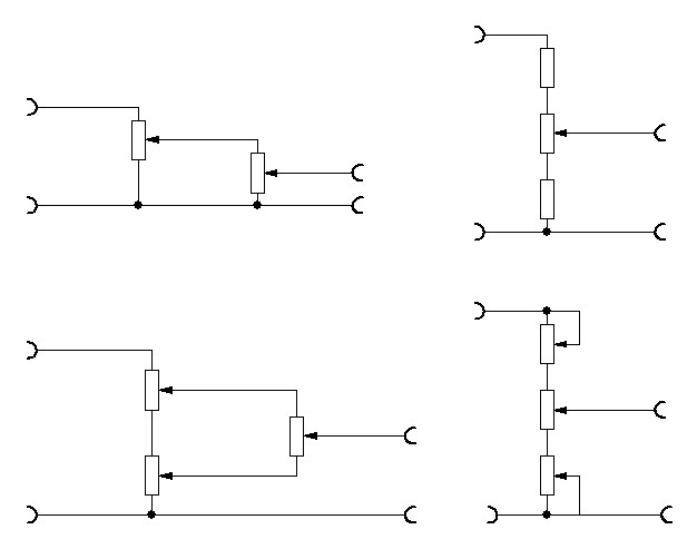 Az alsó két ábrának annyi előnye van, hogy a "saját ellenállása" állandó (mint egy potméternek).