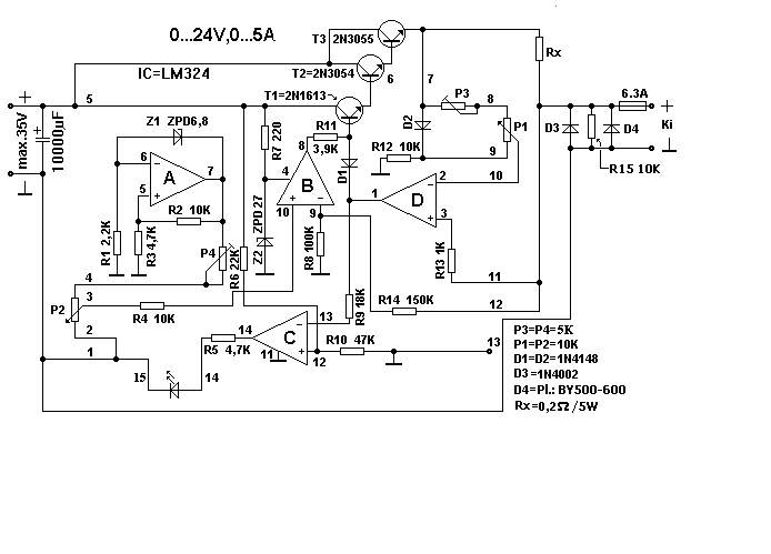 Értem mit szeretnél, de azt nem tudom, hogy ezzel a jelenlegi szabályzással ezt hogyan lehetne megoldani (szerintem sehogy) mert itt "D" kimenete szabályozza vissza T1 -et. Ahhoz olyan módon kellene a szabályzást megoldani, hogy "D" kimenete egyszinten tartsa T1 bázisát. Ahhoz viszont valami kiegyenlítő szabályzás kellene. Lehet hülyeség, de ha D kimenetén lenne egy tranyó, visszacsatolásban, azzal talán lehetne játszani. Viszont a feszültség ebben az esetben még nem lenne állandó. De ez csak feltételezés. Üdv! Akkor azt kellene megfigyelni, hogy mi okozza a visszahajlást. Mert a fesz. és az áram szabályzás igen hasonló. Az egyik a fesz osztóból, a másik az áramfigyelőből...S mégsem hajlik vissza a fesz.szabályzás? Csak nem a dióda az oka? Pedig megvan a kapcsolás valahol a láda mélyén, de kipróbálom biza!