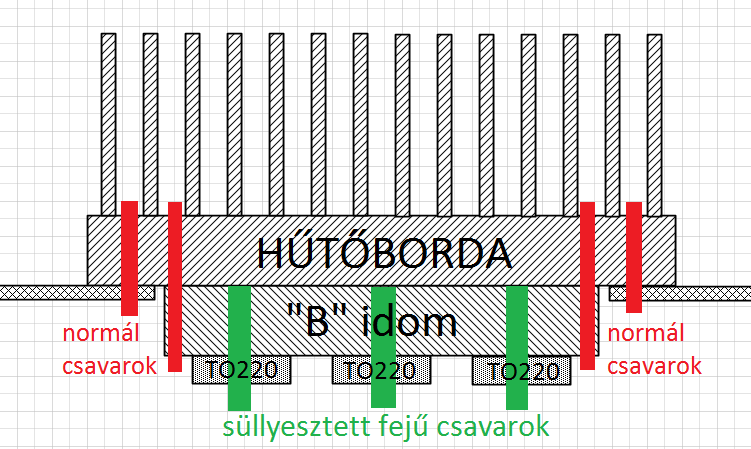 Idézet: „így pont felfeküdnek majd a B-betűvel jelölt alumínium lapra, ami pedig a műszerdoboz külsején lévő hűtőbordához kapcsolódik.” Ezt úgy kell elképzelni, hogy belül lesz egy alulap, kívül meg a hűtőborda, és valami alutávtartókon kéne a melegnek átmennie? Elég lesz az úgy? Mert ugye ezeknek a műszerdobozoknak porszórt a felülete, ami abszolút nem alkalmas hőátadásra...