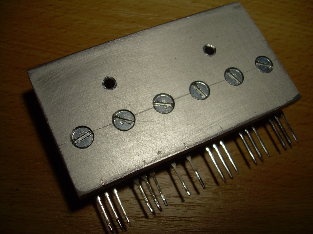 Ezt még 2008-ban találtam ki, több okból is nagyon szeretem. Egyrészt egyben tartja az összes teljesítmény-alkatrészt így könnyebben kezelhető mert egyszerre tudom cserélni az egészet. Másrészt ami nagyon fontos hogy a tesztek idejére amíg még nincs rajta a végleges nagy borda addig is némileg képes hűteni. Ez azért nagyon jó mert néhány másodpercig le képes hűteni a tranzisztorokat önmagában is és teszteléskor ez pont elegendő. Harmadrészt némely áramkörömbe szoktam hővédelmet beépíteni és a tesztelés idejére ha tartósan hűteni nem is tud, de a termikus kapcsolatot gyönyörűen biztosítja a melegedő alkatrészek és a hőfigyelő alkatrész közt. Negyedrészt sokkal könnyebb ha csak 2db csavart kell a hűtőborda lamellái közt becsavarnom mint ha mindegyik alkatrészhez egyet-egyet. Ráadásul így a hűtőbordára szerelendő alkatrészek távolságát nem kell hozzáigazítani a hűtőborda lamelláihoz. Na például ilyesmire gondolok én amikor azt mondom hogy a TO-3 sokkal kisebb szabadságot ad az embernek a tervezéskor és az építéskor.