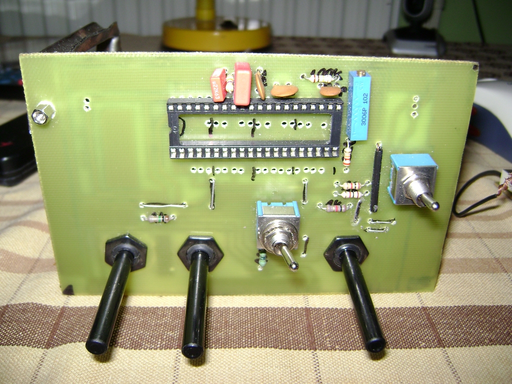 Az úgy jól van, mert az ic lábai ki lesznek forditva és ugy lesznek beletéve előről. Ezt azért csináltam igy, mert nekem a kijelző nagyobb, és más a lábkiosztása, és igy nem illik bele a nyákba. Tehát az ic nyugodtan lehet elől, és a kijelző csak kábelokkal lesznek odaforrasztva.