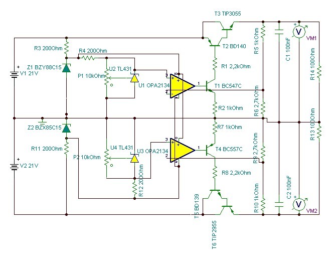 Igen azt visszaírtam 2,2k-ra.(A szimulátorom meg szerintem hülyít engem. Amikor beletettem ezt az elrendezést, azt mutatta, amit kéne. Most maradt minden, és azt mondja, hogy nem megy a negatív tápfesz 20,24volt alá. Most meg megint jó.) Na szóval akkor ez rendben van most már. Köszönöm a segítséget.