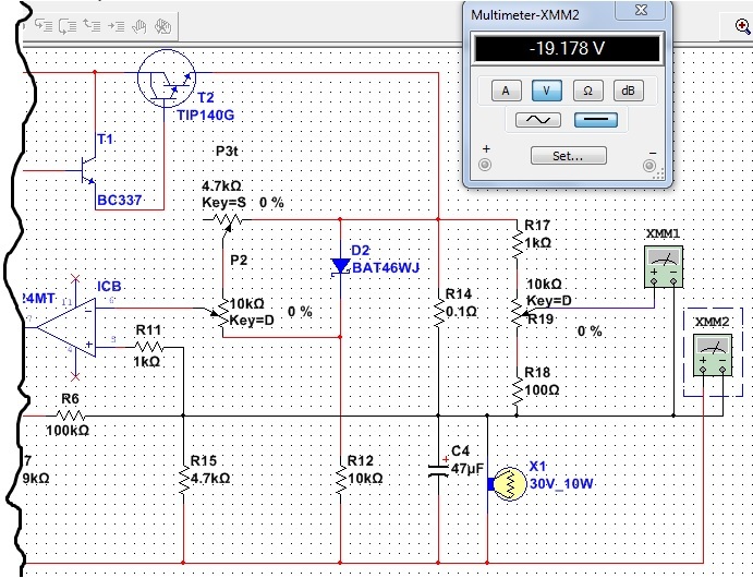 Igen sikerült elszámolnom. Most már csak az a gondom hogy ebben a hozzászólásban lerajzoltam hogyan van a műszer összekötve, tehát a sönt a kék és fekete vezeték közt van tehát nekem is ide kell kötnöm a labortápom R14-ét (az osztó tagokkal) (a kimeneten a műszerek ne zavarjanak meg) a problémám az hogy a feszültségmérő a fekete vezetékhez képest méri a piros vezeték potenciálját tehát mivel R14 egyik kivezetése sem test ponton van így a feszültségmérőt azt sem tudom hogyan kössem be. Már teljesen bele zavarodtam a dolgokba.
