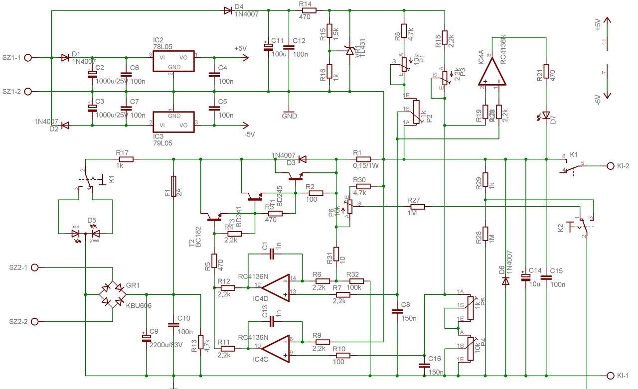40V, és 4A lesz, ez pedig nekem bőven elég. Ha a feszmérő bemenetet a BE1 pontra kötöm (K2 kapcsoló 2 pontja), akkor a BE2 pontra mit kell kötni? Az R1-nek 0,15 Ohmot tettem, ki kell-e cserélni 1 ohmosra, vagy ki lehet potival korrigálni? És a kérdés továbbra is az, hová kell kötni a BE2-t?