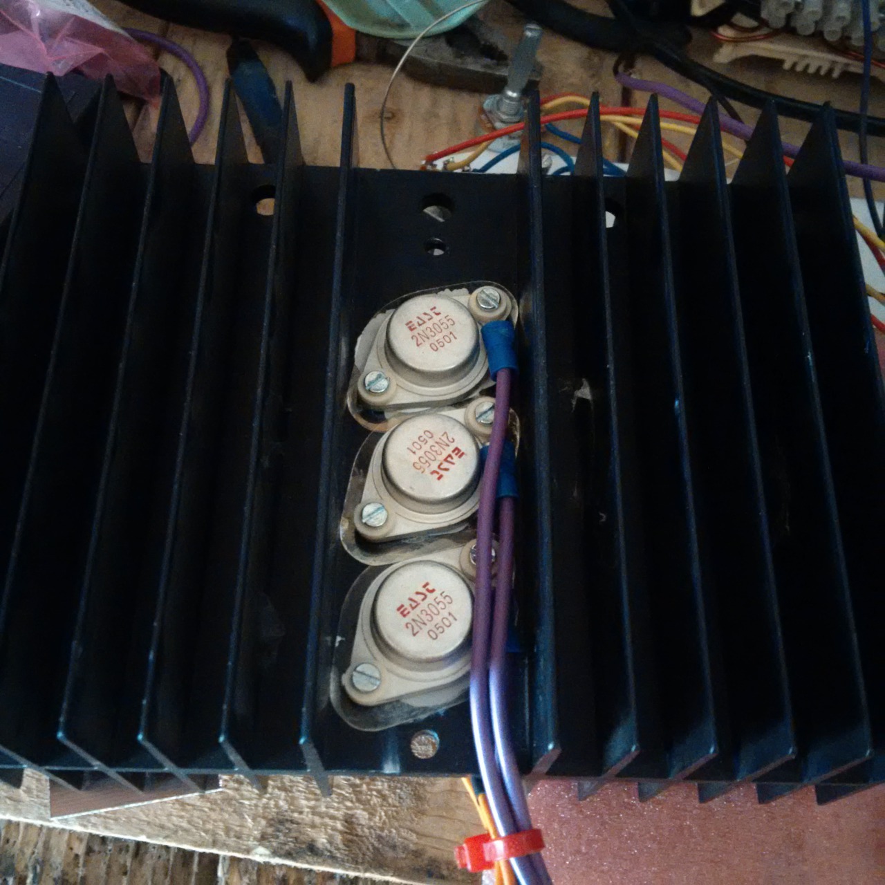 Nem 2N3055-el, hanem MJ 15022-23 párraj jártam ugyan igy... felbontás után lehetett látni a hamis gyártást.. 1X1mm csipp.. én is megnézném mit rejt a tokozat...