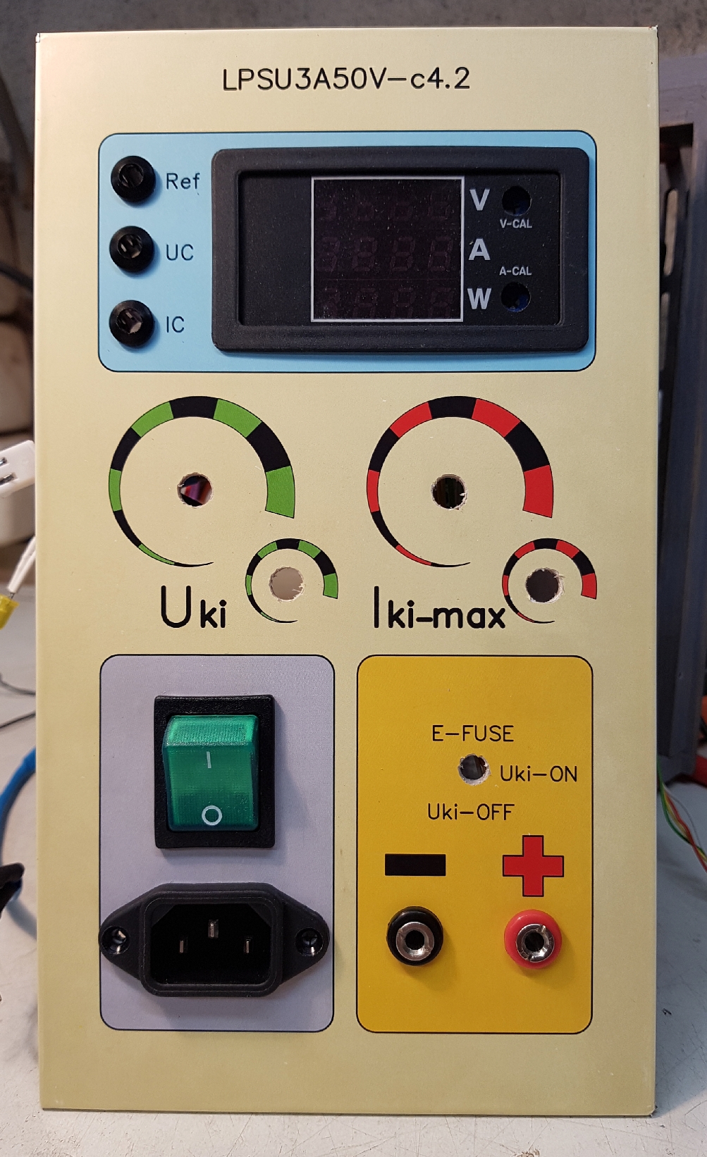 Az előlapra szerintem nem célszerű a betáp csatlakozót építeni. Az maradjon csak hátul, (nálam még a be-ki kapcsoló is ott helyezkedik el), anélkül is van az asztalon az előtérben elég kábel, nem kell oda még egy sprőd, nehezen odébb tolható, a munka során csak útban lévő darab.