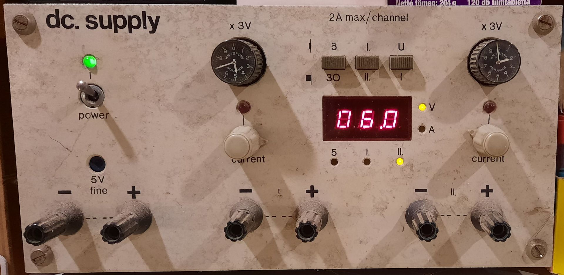 A nyolcvanas évek közepe táján építettem ezt a labortápot. Csatornánként 1-1 BOURNS helipot, ( órapoti ) vezérli a kimenő feszültséget. Szinte tized volt pontossággal tudom állítani a voltmérő nélkül is.