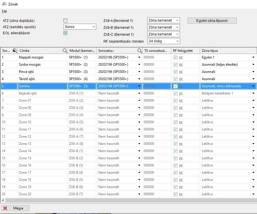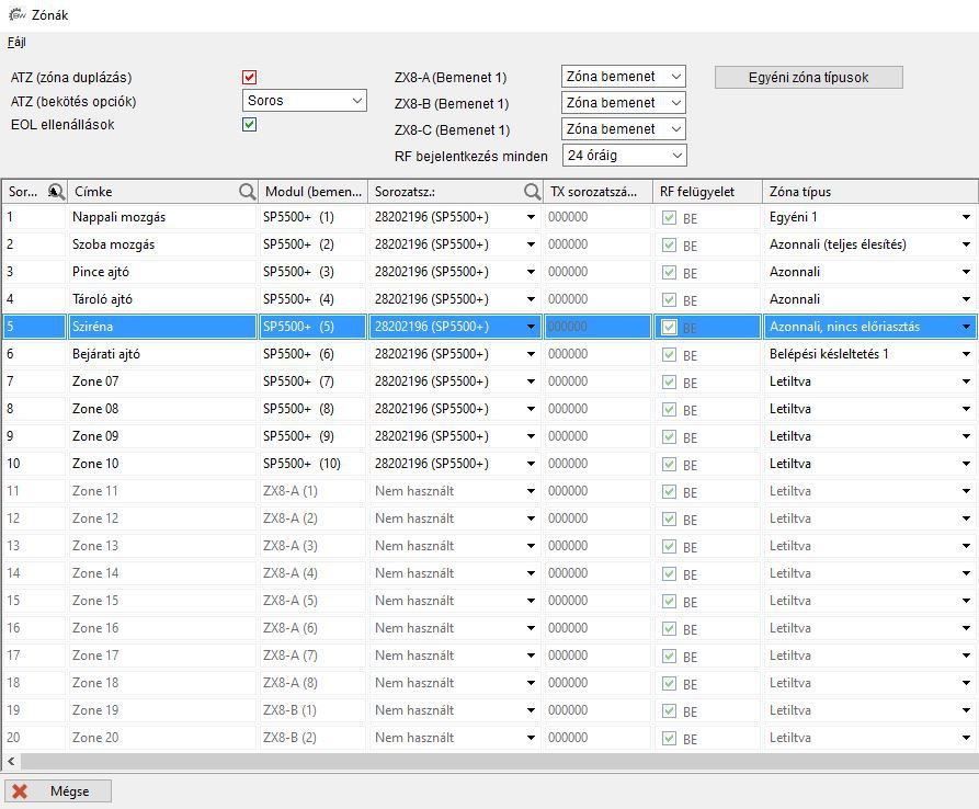 Ha bekapcsolom az zóna duplázást akkor a programben melyik két zóna fog egy fizikai zónához tartozni?