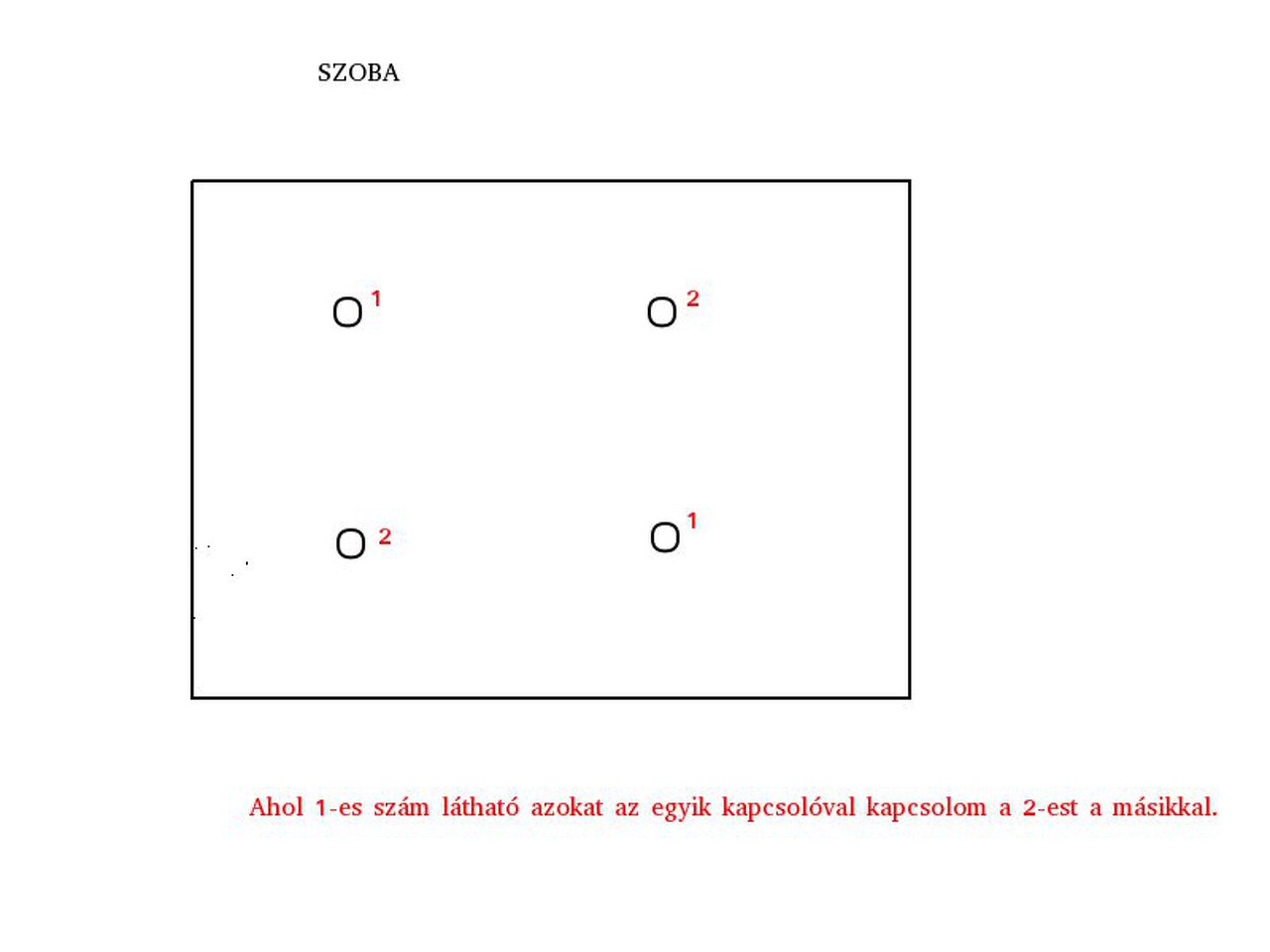 A szoba úgy néz ki, hogy 4 Led Spot világít, amit 2 kapcsolóval tudok kapcsolni, tehát 1 kapcsoló 2 Spotot működtet. (Lásd: Csatolt kép).
